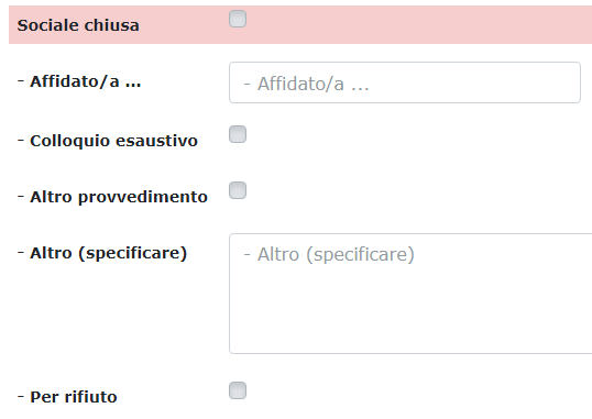 In questo caso la casella fondamentale è “Sociale Chiusa”, cui si può aggiungere le informazioni aggiuntive compilando o contrassegnando i campi seguenti.