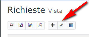 Per aprire una scheda in modifica è necessario utilizzare il tasto “Matita” presente in alto nella visualizzazione della scheda in modalità “Vista”