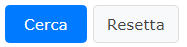 Alla fine della schermata il pulsante Cerca effettuerà la ricerca, mentre quello Resetta servirà ad azzerare i criteri di ricerca inseriti ( lo stesso che si ottiene con il pulsante