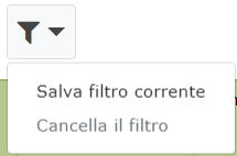 Dopo aver effettuato una ricerca è possibile salvare il filtro corrente con il pulsante Filtri